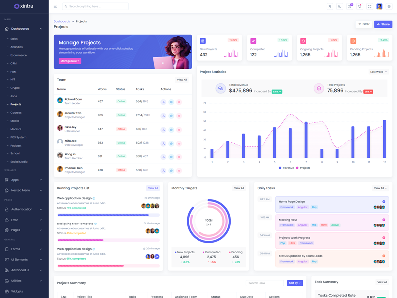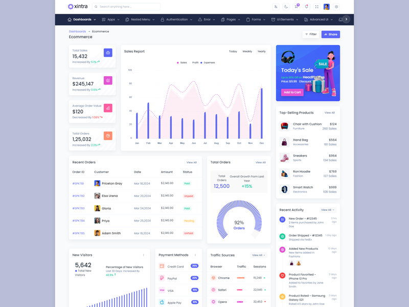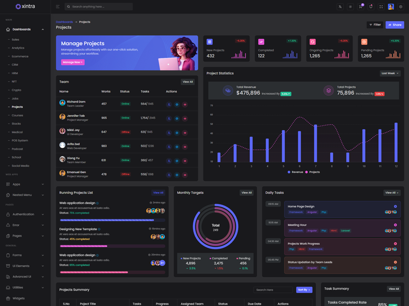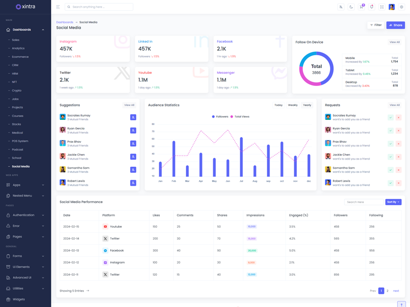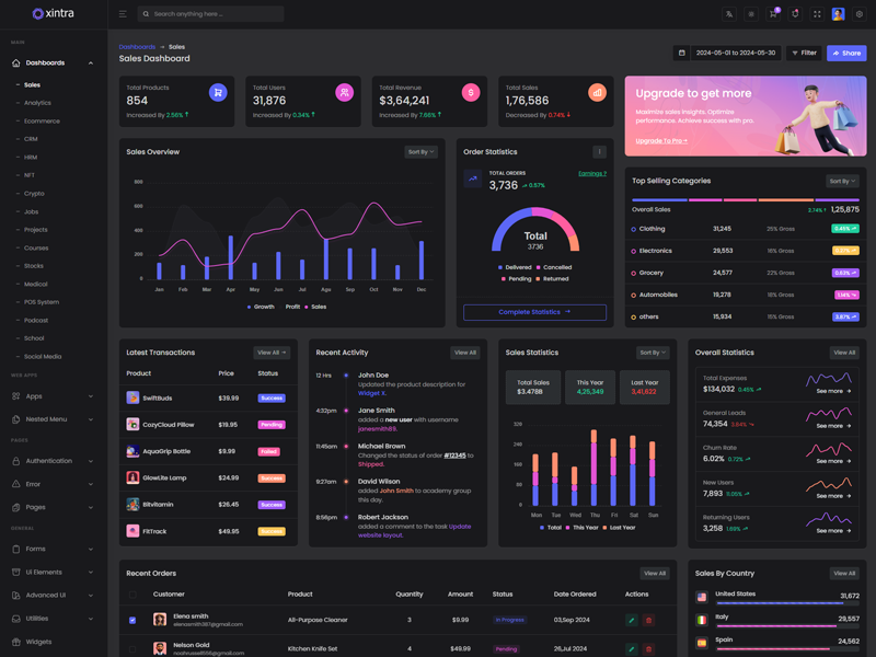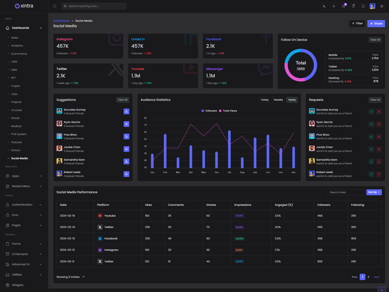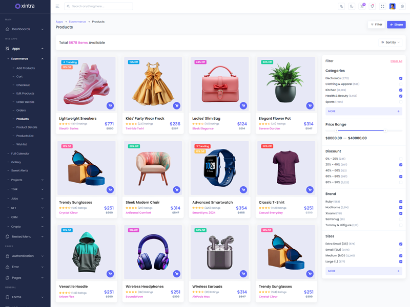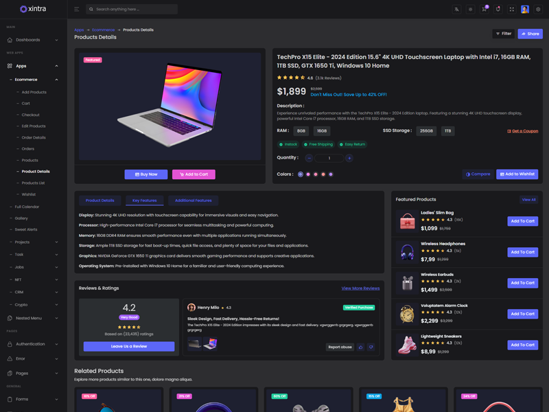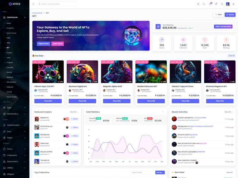 Explore the latest trending features incorporated into the Xintra Laravel Tailwind CSS Admin template, showcasing how we have enhanced and designed our template. When it comes to design, we always keep a close watch on the most trending features.