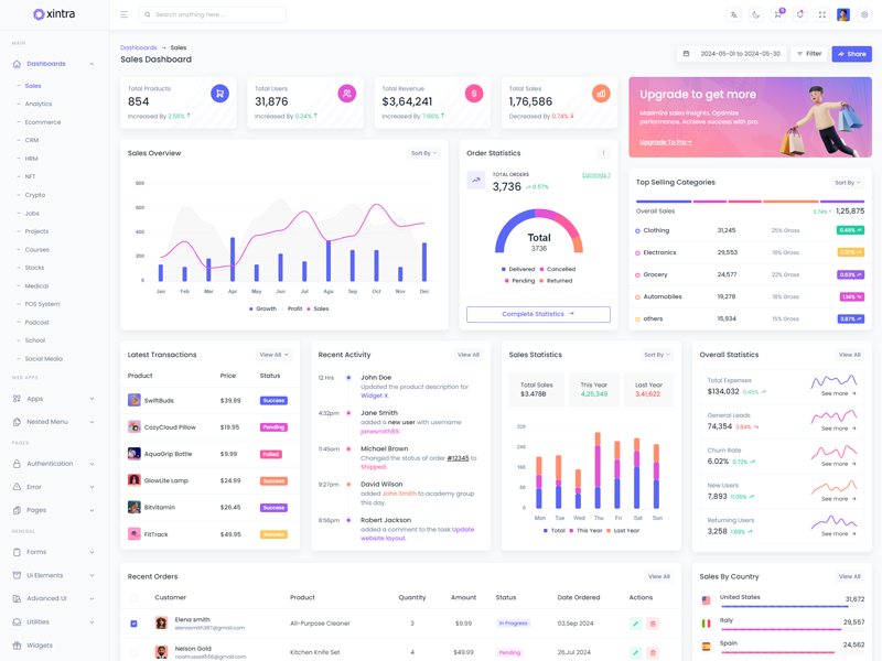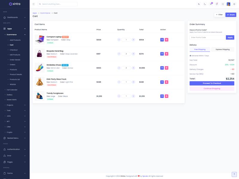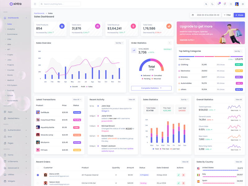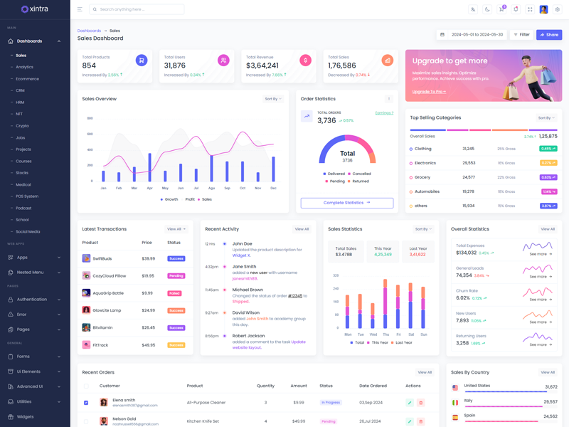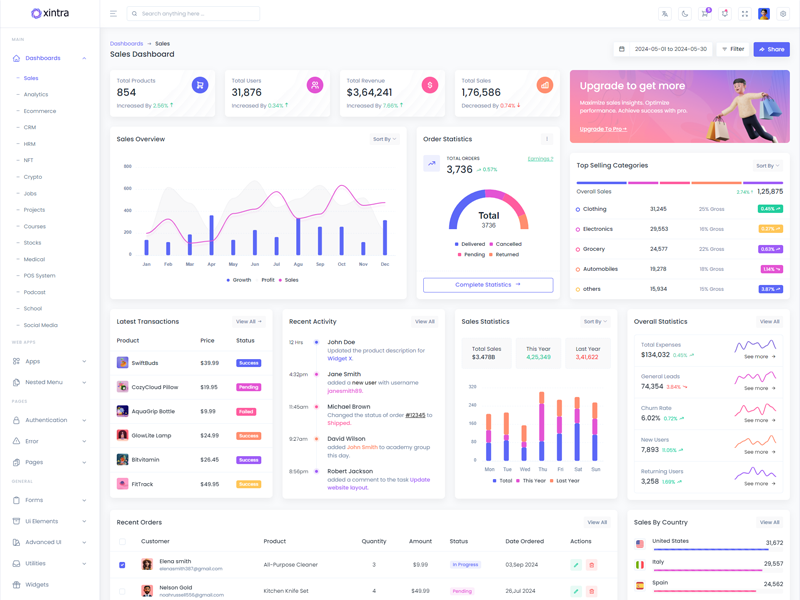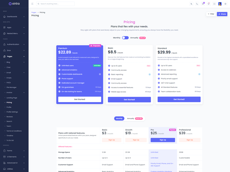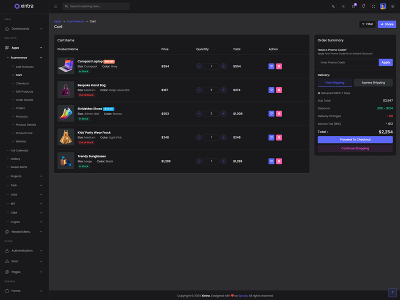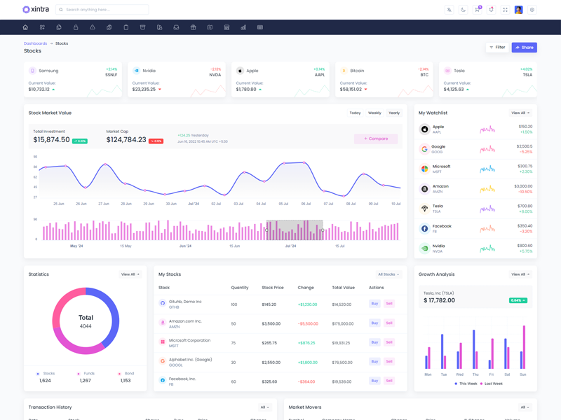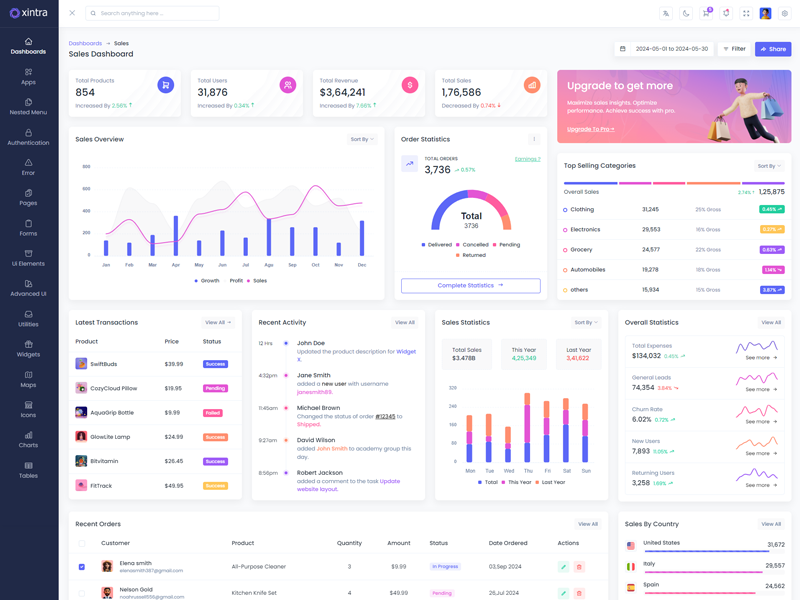 Xintra - Laravel Premium Tailwind CSS Admin & Dashboard Template boasts essential features such as design quality, compatibility with your front-end framework, responsiveness, ease of customization, comprehensive documentation, and dedicated support. Additionally, it includes integrated plugins and other supplementary features.