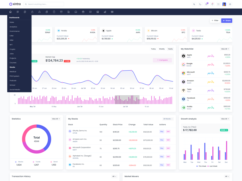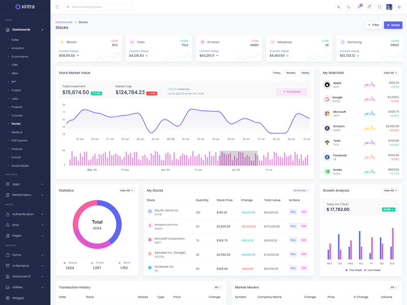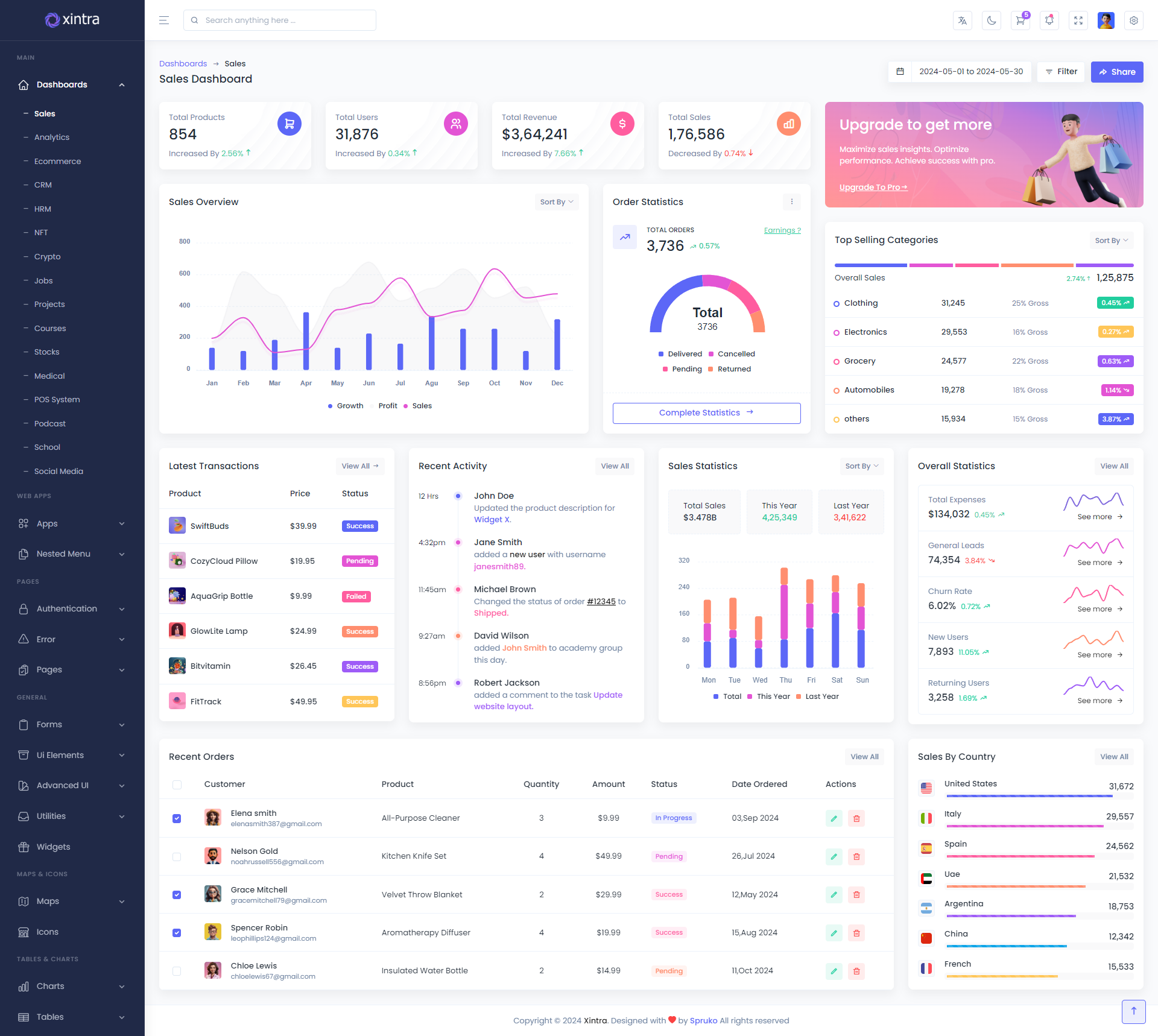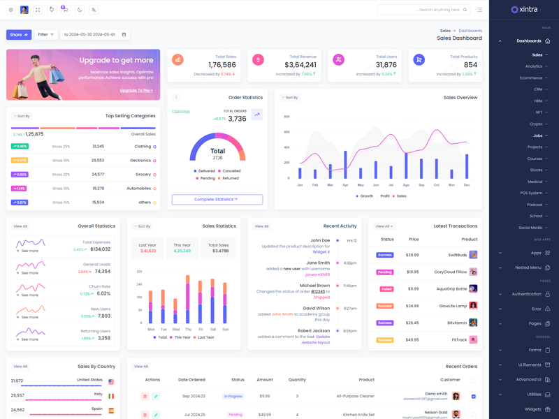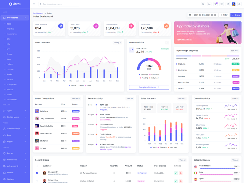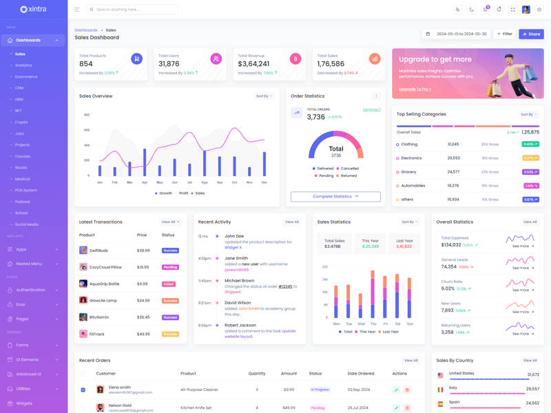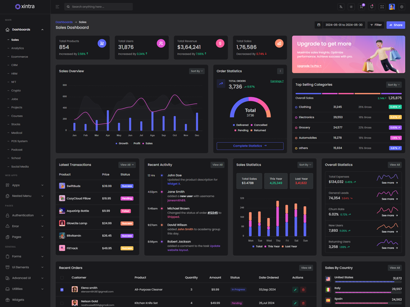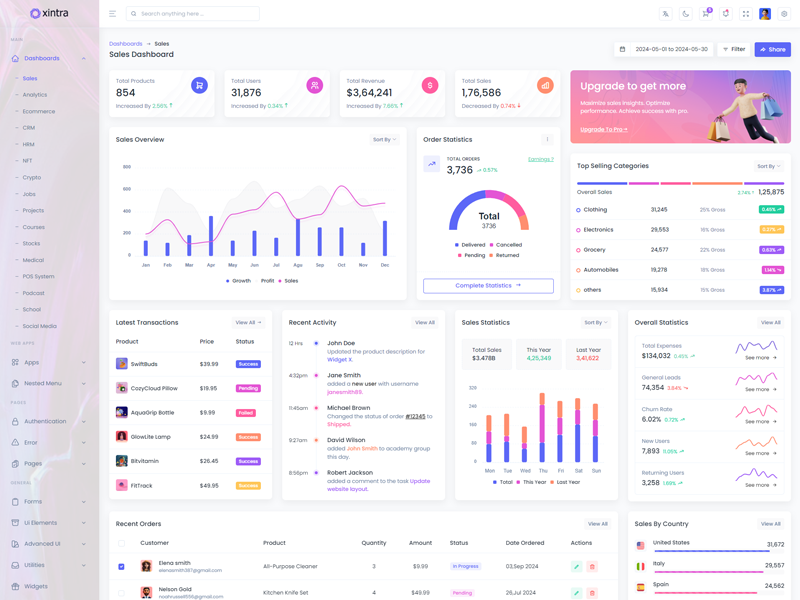 Xintra - Laravel Premium Tailwind CSS Admin & Dashboard Template boasts essential features such as design quality, compatibility with your front-end framework, responsiveness, ease of customization, comprehensive documentation, and dedicated support. Additionally, it includes integrated plugins and other supplementary features.