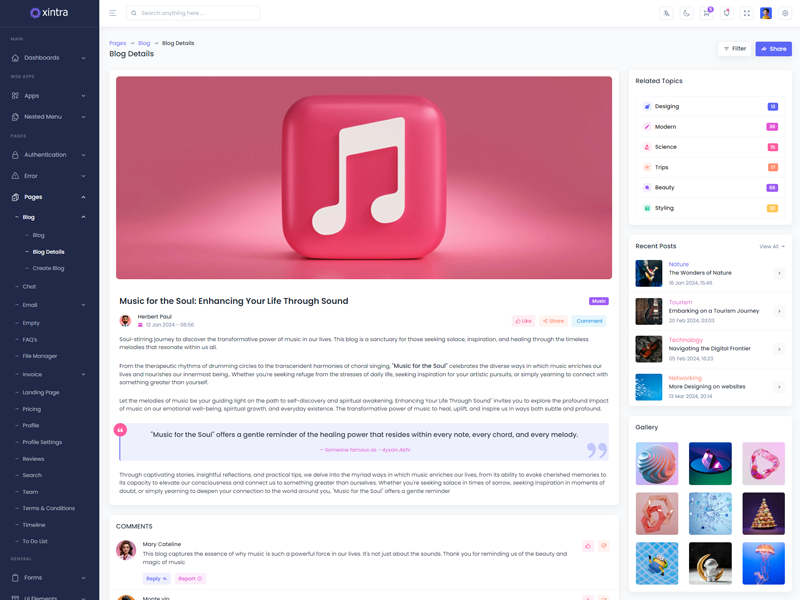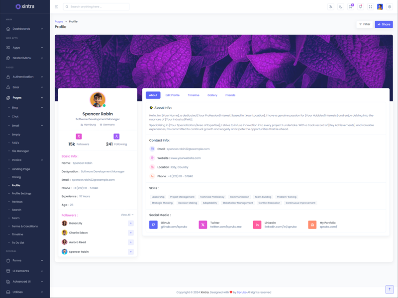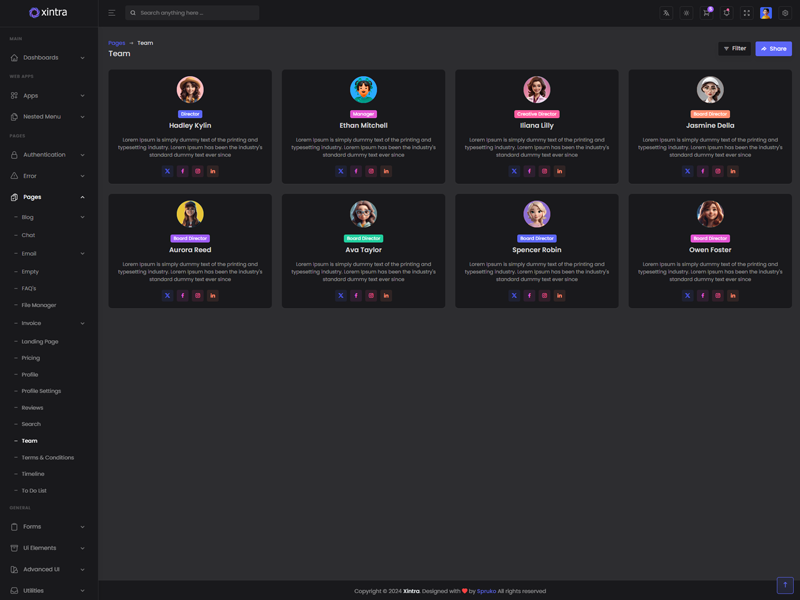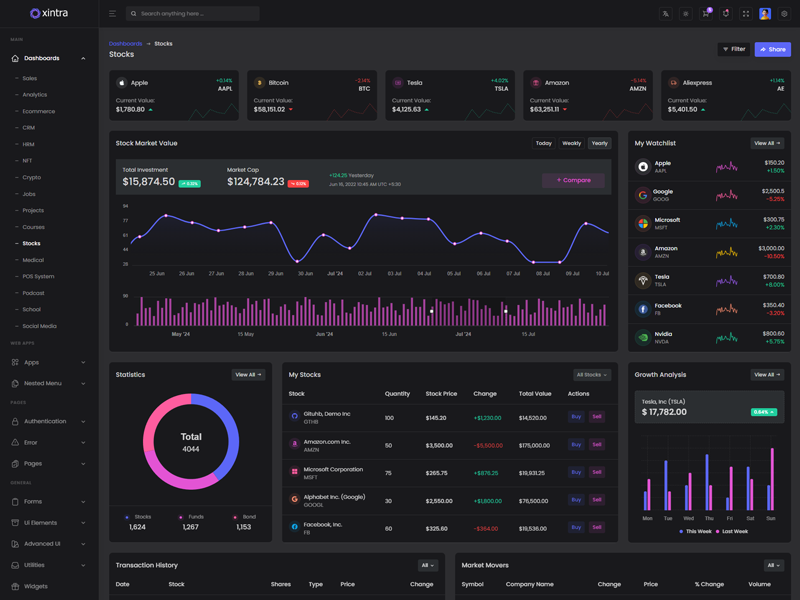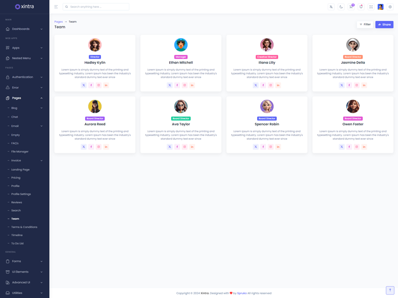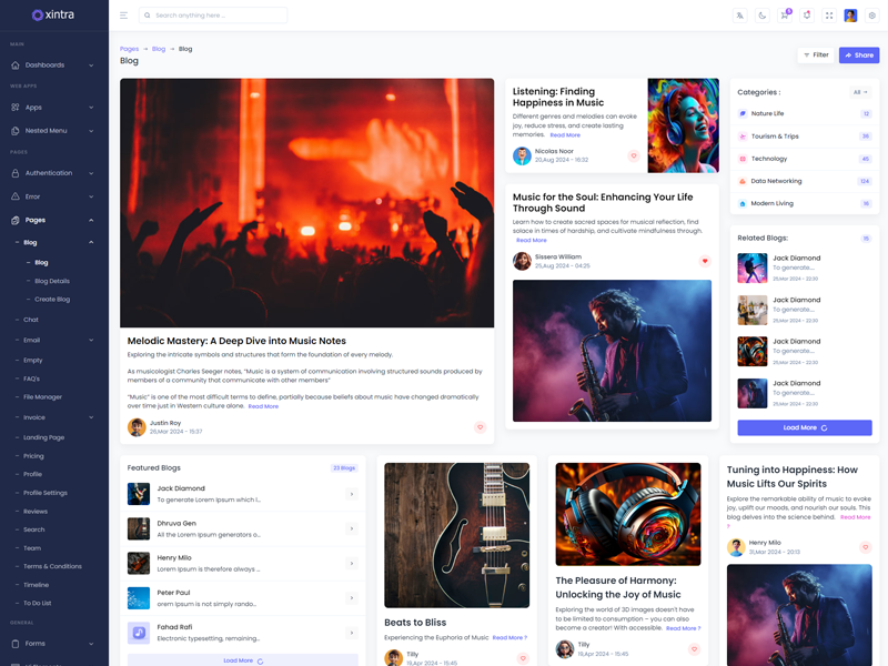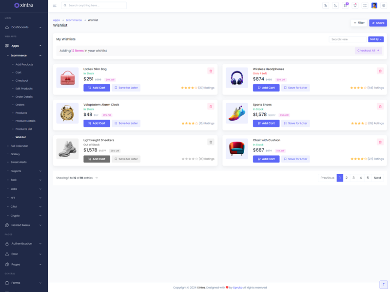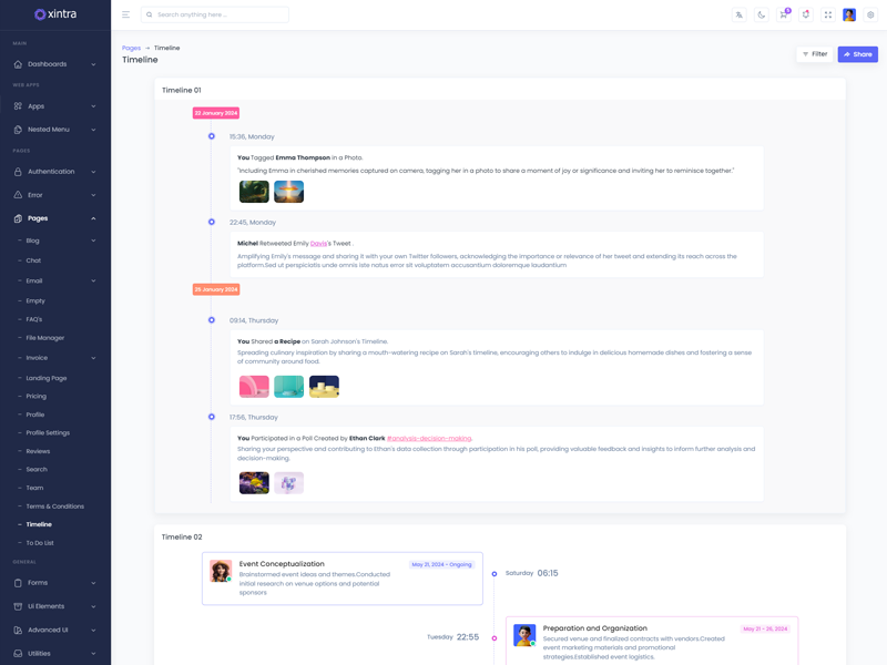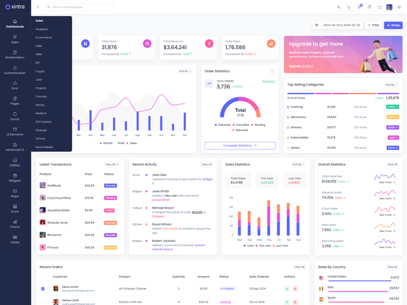 Xintra - Laravel Premium Tailwind CSS Admin & Dashboard Template boasts essential features such as design quality, compatibility with your front-end framework, responsiveness, ease of customization, comprehensive documentation, and dedicated support. Additionally, it includes integrated plugins and other supplementary features.