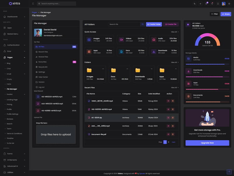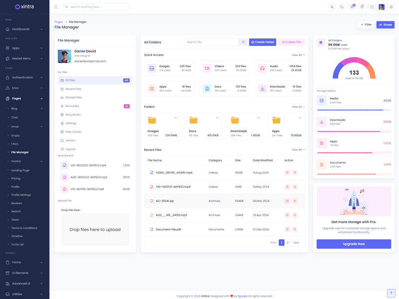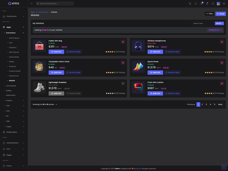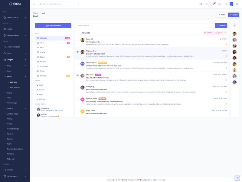 Xintra Laravel Tailwind CSS admin template comes with ready to use features. It has lots of ready-made features saves more time for developers.
