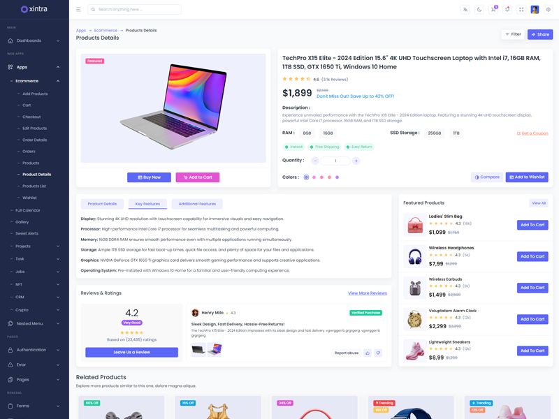 Xintra Laravel Tailwind CSS Admin Template Main Features