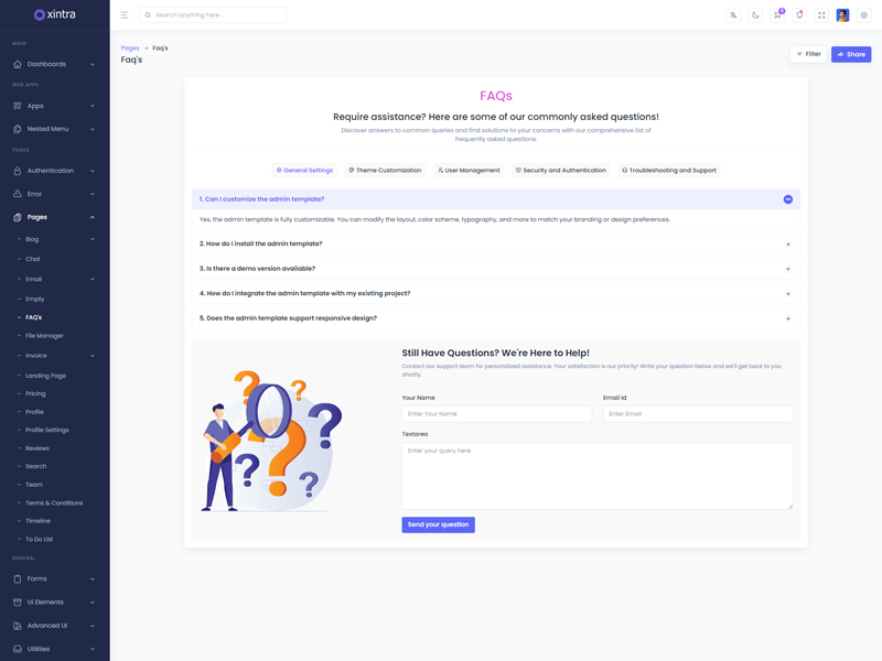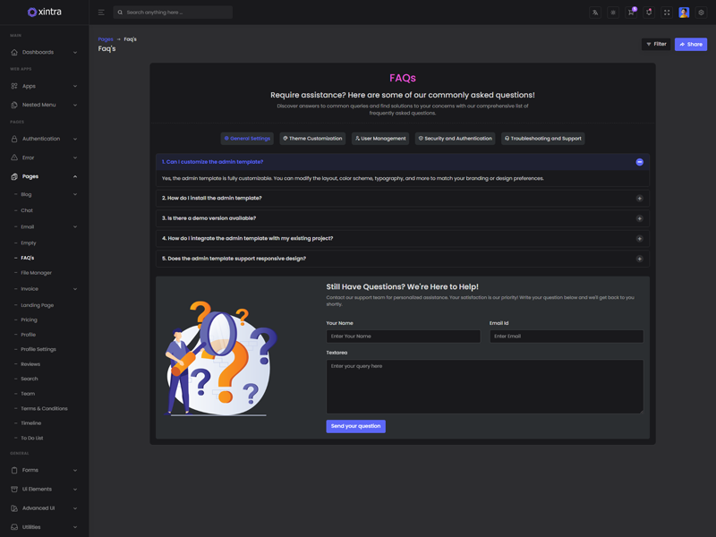 Enjoy lifetime updates for free with your purchase of the Xintra Laravel Admin Dashboard template. For any questions our support team is always available to assist you.