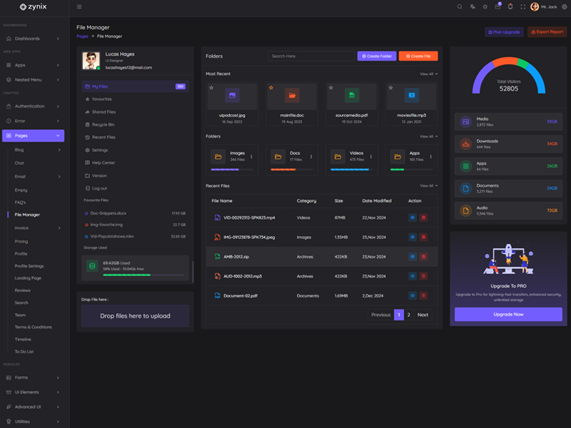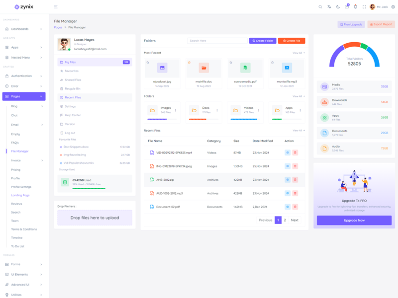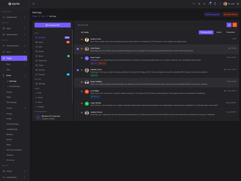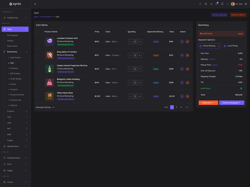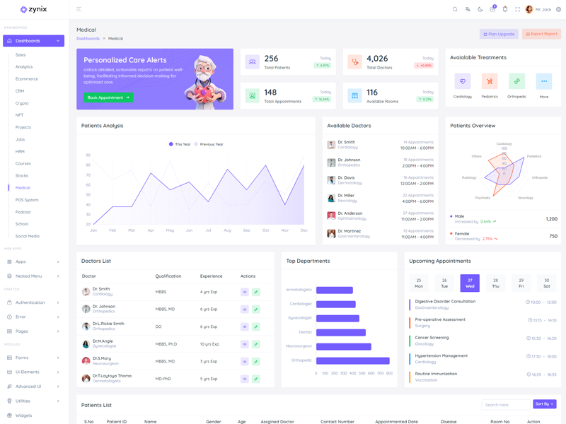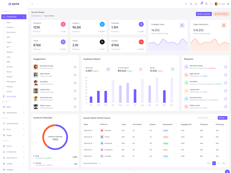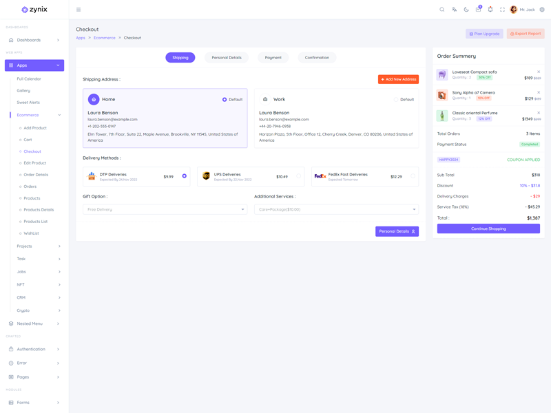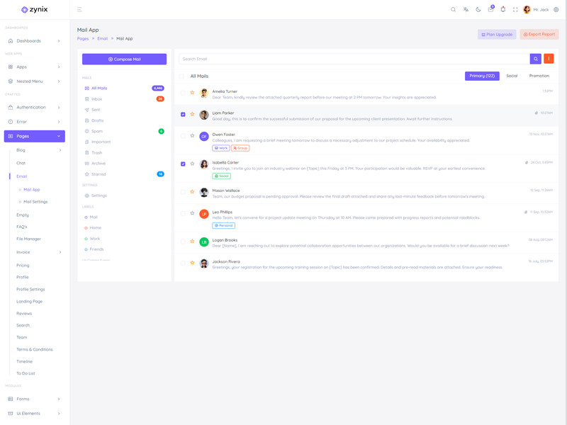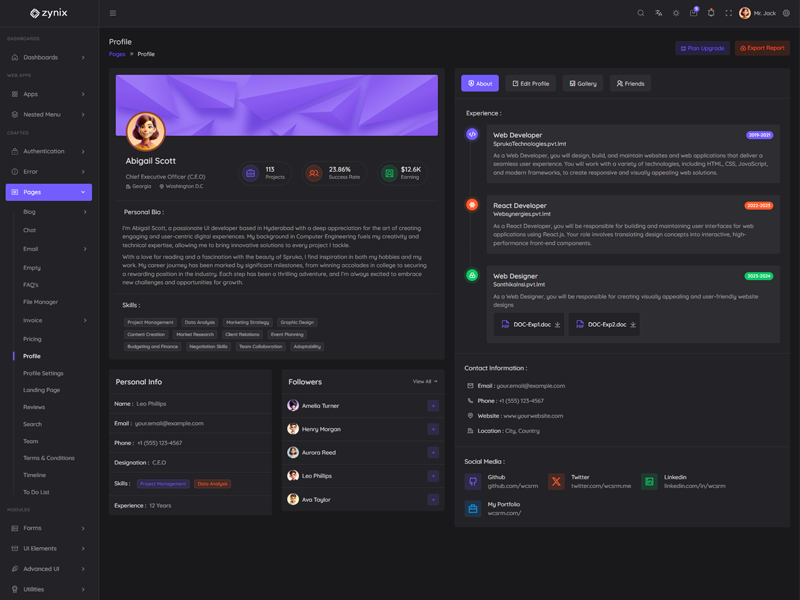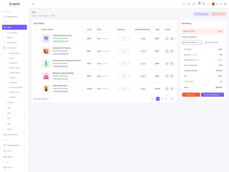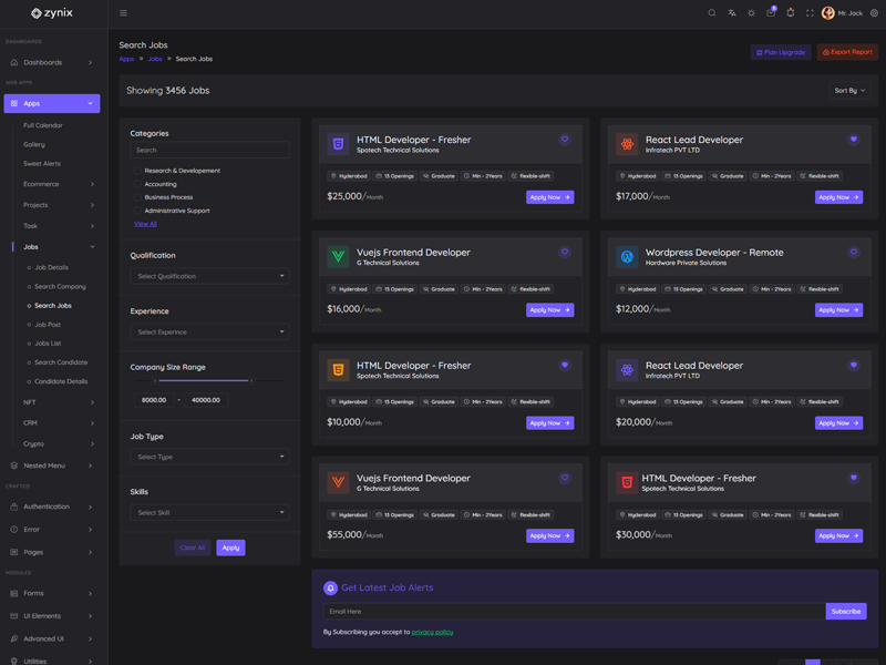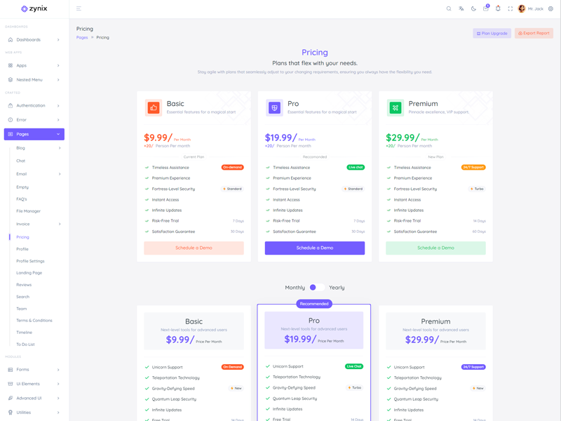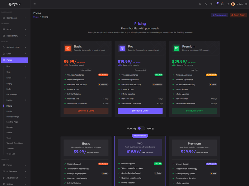 Zynix - Premium Laravel Tailwind Admin & Dashboard Template offers essential features, including high design quality, compatibility with your front-end framework, responsiveness, ease of customization, comprehensive documentation, and dedicated support. Additionally, it comes with integrated plugins and various supplementary features.