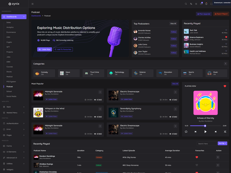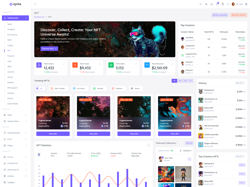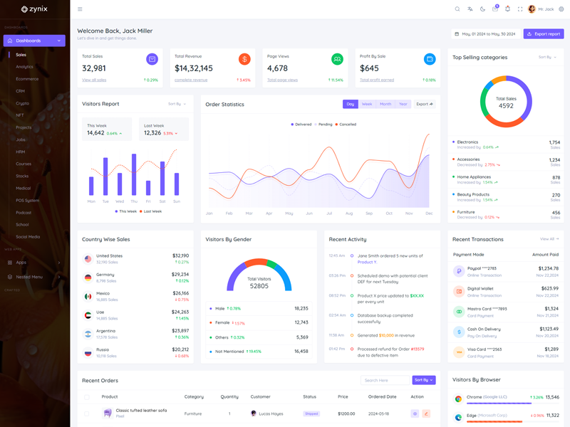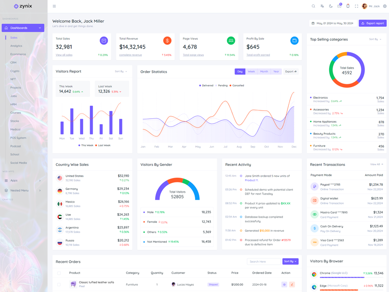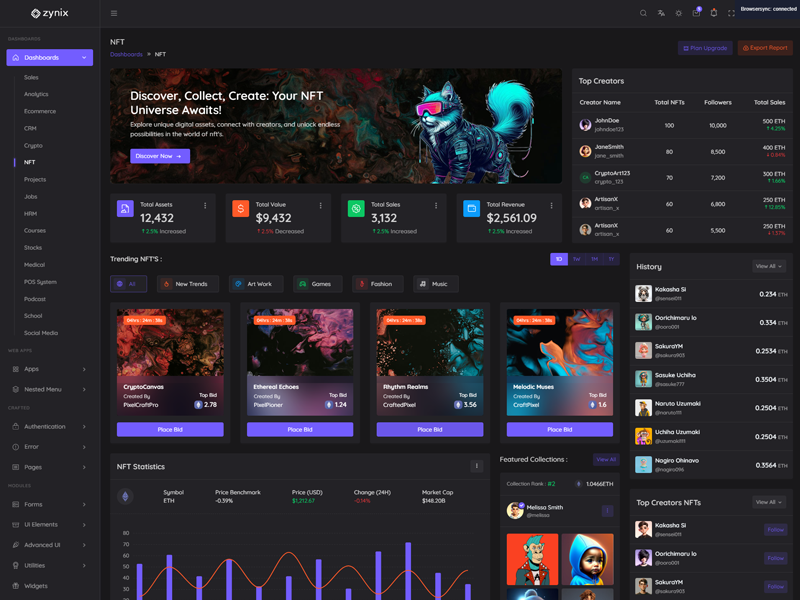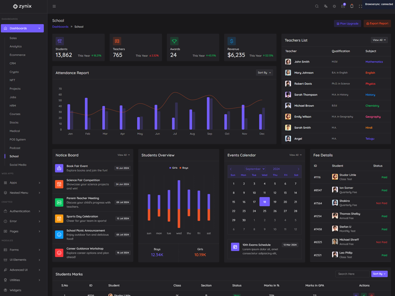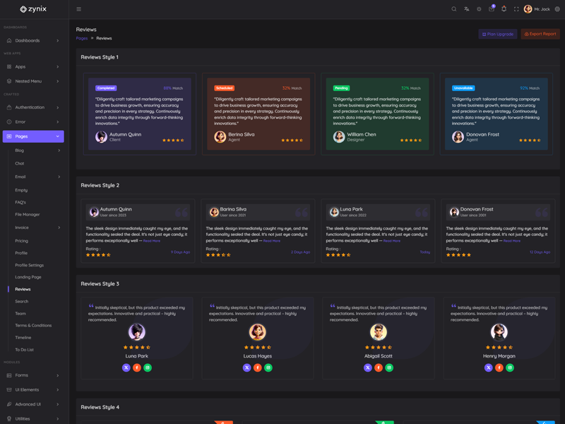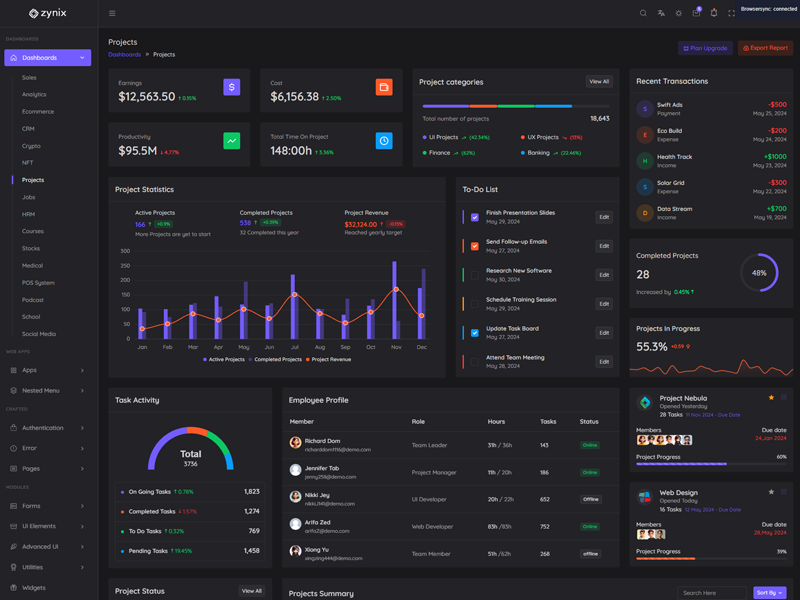 Discover the latest trending features integrated into the Zynix Laravel Tailwind Admin & Dashboard Template, highlighting how we’ve enhanced and designed our offering. We consistently monitor the most popular design trends to ensure our template remains cutting-edge.