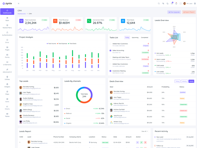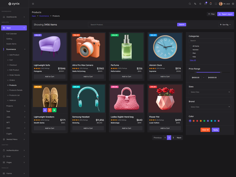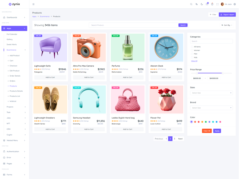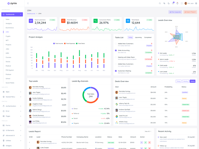 Zynix Laravel features 16 stunning dashboards with diverse themes, allowing users to customize the Premium Tailwind Admin & Dashboard Template to suit their preferences.