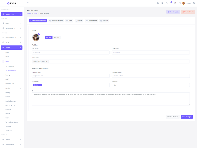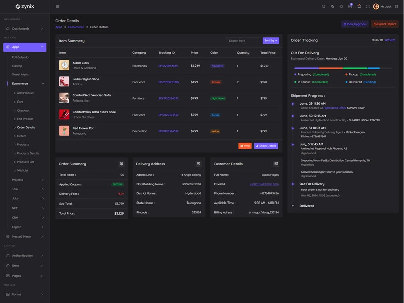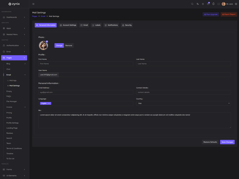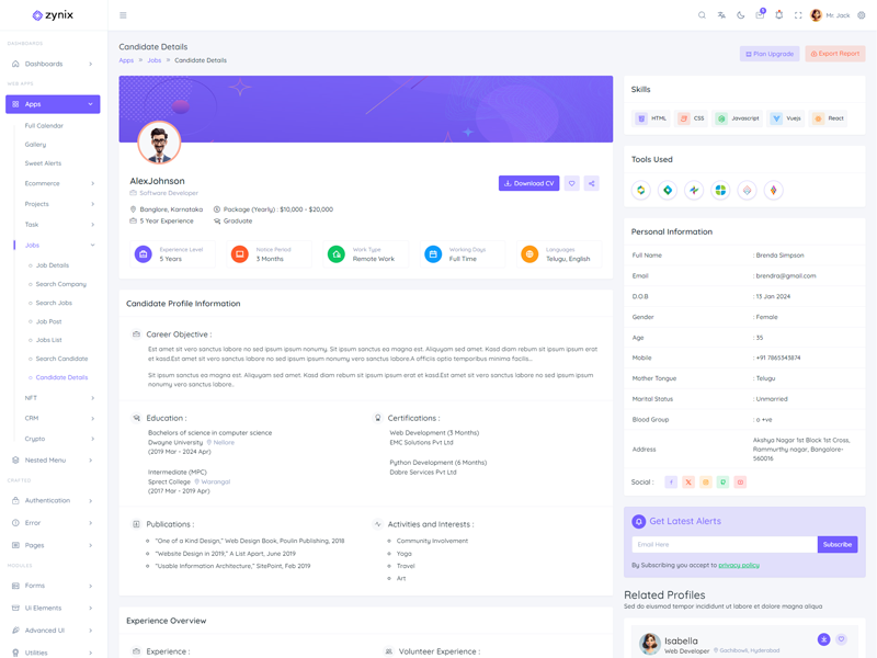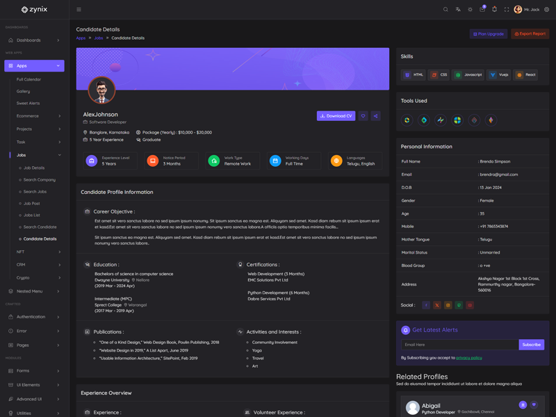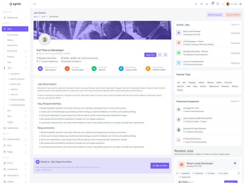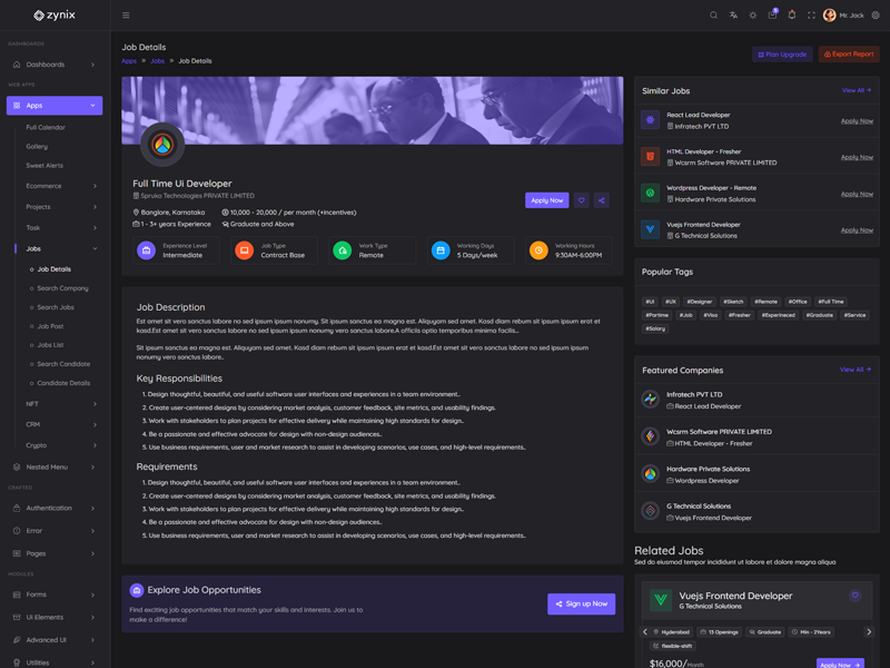 This is the basic information related to “Zynix Laravel Tailwind Dashboard Template”.