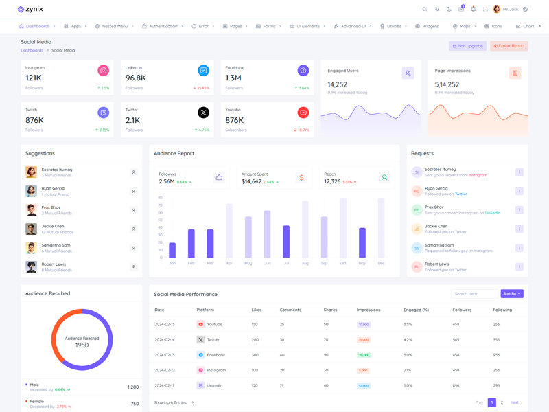 The Zynix Laravel Tailwind Admin & Dashboard Template comes packed with ready-to-use features, providing numerous pre-built components that save developers valuable time.